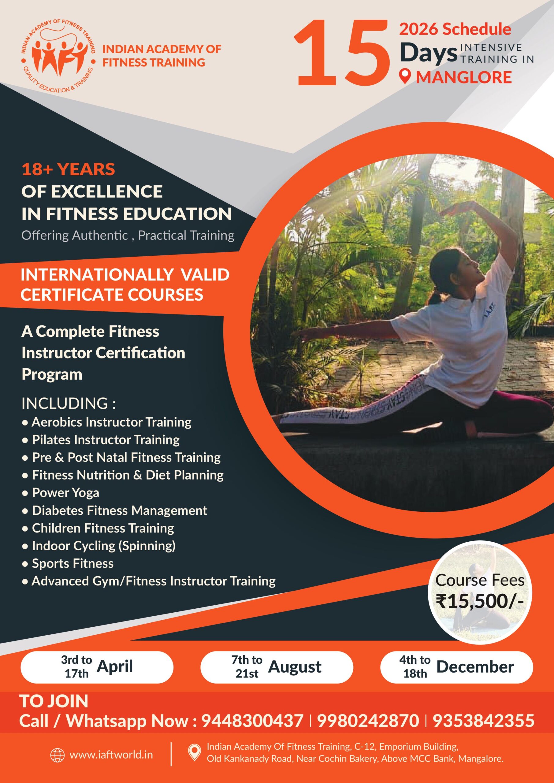 The 15-Day Intensive Training Program by Indian Academy of Fitness Training (IAFT) is a fast-track, all-in-one professional fitness course conducted over 15 continuous days.